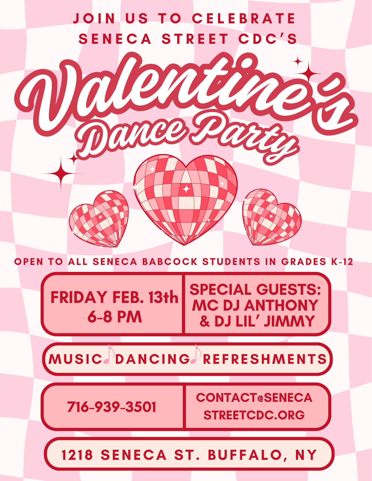 Join us for a Valentine’s Day Dance with all our loved ones from Seneca Street CDC!